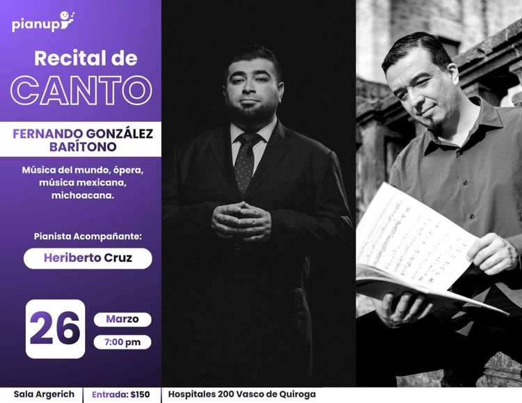 La cita es el Jueves 26 de marzo de 2026 a las 7:00 p.m en la Sala Argerich, del Centro Cultural PianUp.
